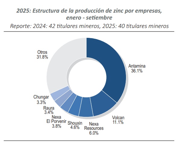 Los tres titulares mineros representaron en conjunto el 53.1% de la producción total del zinc peruano.